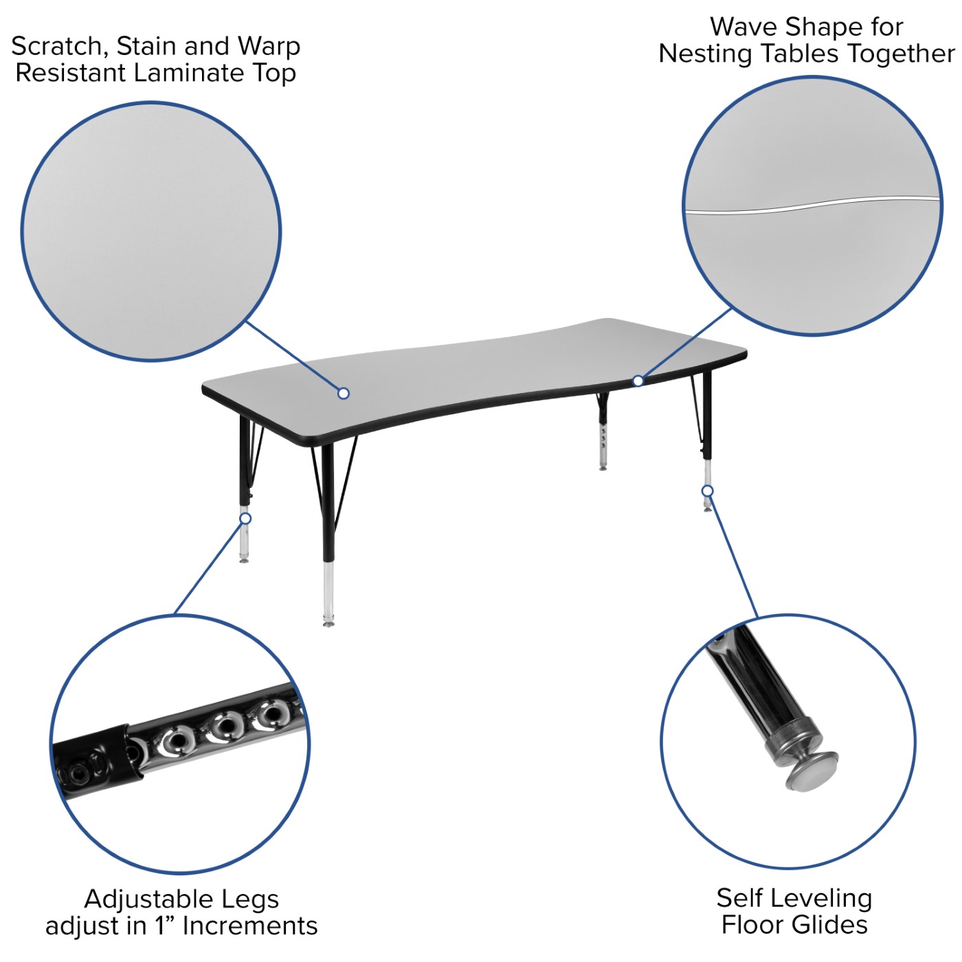 86" OVAL WAVE FLEXIBLE LAMINATE ACTIVITY TABLE SET WITH 12" STUDENT STACK CHAIRS, GREY/BLACK: FREE SHIPPING!