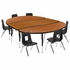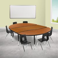 86" OVAL WAVE FLEXIBLE LAMINATE ACTIVITY TABLE SET WITH 12" STUDENT STACK CHAIRS, OAK/BLACK: FREE SHIPPING!