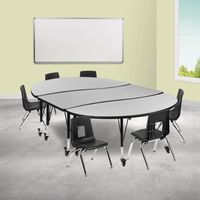 MOBILE 86" OVAL WAVE FLEXIBLE LAMINATE ACTIVITY TABLE SET WITH 12" STUDENT STACK CHAIRS, GREY/BLACK FREE SHIPPING!