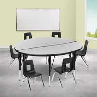 47.5" CIRCLE WAVE FLEXIBLE LAMINATE ACTIVITY TABLE SET WITH 12" STUDENT STACK CHAIRS, GREY/BLACK: FREE SHIPPING!