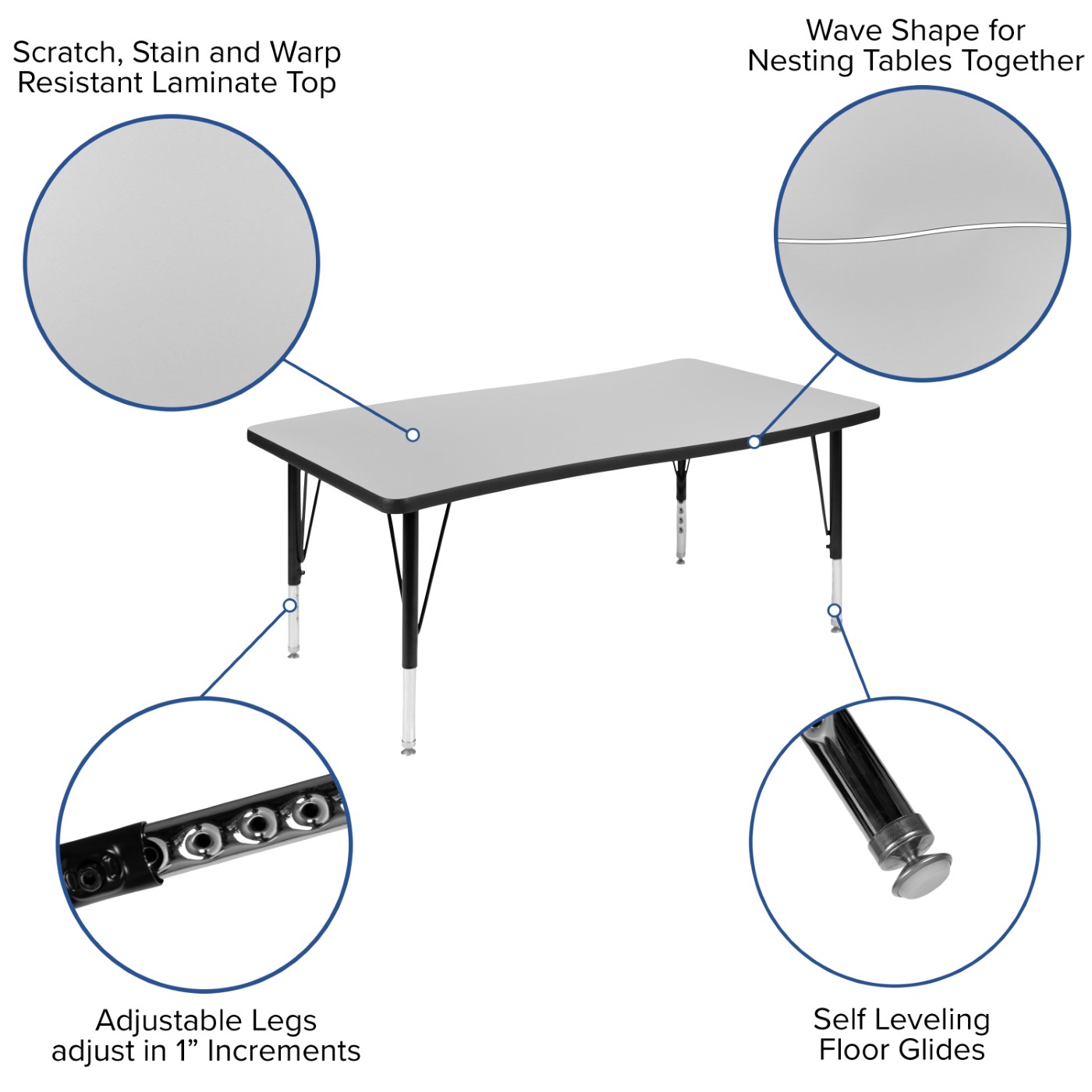 76" OVAL WAVE FLEXIBLE LAMINATE ACTIVITY TABLE SET WITH 14" STUDENT STACK CHAIRS, GREY/BLACK FREE SHIPPING!