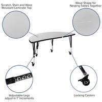 MOBILE 76" OVAL WAVE FLEXIBLE LAMINATE ACTIVITY TABLE SET WITH 14" STUDENT STACK CHAIRS, GREY/BLACK FREE SHIPPING!