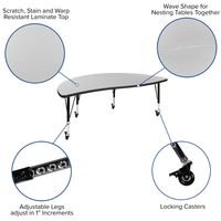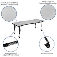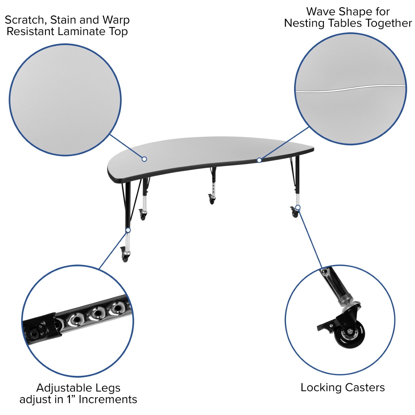 MOBILE 86" OVAL WAVE FLEXIBLE LAMINATE ACTIVITY TABLE SET WITH 14" STUDENT STACK CHAIRS, GREY/BLACK FREE SHIPPING!