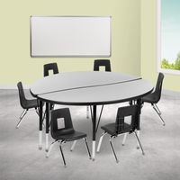 47.5" CIRCLE WAVE FLEXIBLE LAMINATE ACTIVITY TABLE SET WITH 14" STUDENT STACK CHAIRS, GREY/BLACK FREE SHIPPING!