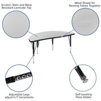 47.5" CIRCLE WAVE FLEXIBLE LAMINATE ACTIVITY TABLE SET WITH 14" STUDENT STACK CHAIRS, GREY/BLACK
