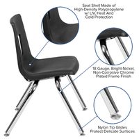 - Classroom Chair Size: 16"W x 15.5"D x 23.75"H; Back Size: 11.5"W x 11"H; Seat Size: 12"W x 11.5"D x 14"H