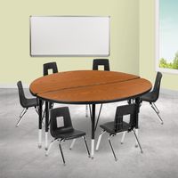 47.5" CIRCLE WAVE FLEXIBLE LAMINATE ACTIVITY TABLE SET WITH 14" STUDENT STACK CHAIRS, OAK/BLACK FREE SHIPPING!
