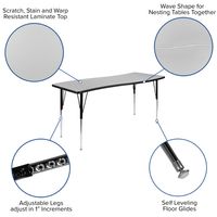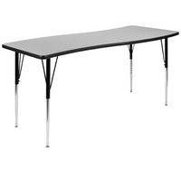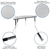 86" OVAL WAVE FLEXIBLE LAMINATE ACTIVITY TABLE SET WITH 18" STUDENT STACK CHAIRS, GREY/BLACK FREE SHIPPING!