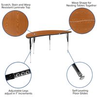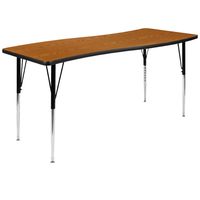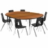 86" OVAL WAVE FLEXIBLE LAMINATE ACTIVITY TABLE SET WITH 18" STUDENT STACK CHAIRS, OAK/BLACK FREE SHIPPING!