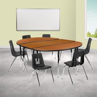 86" OVAL WAVE FLEXIBLE LAMINATE ACTIVITY TABLE SET WITH 18" STUDENT STACK CHAIRS, OAK/BLACK