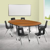 MOBILE 86" OVAL WAVE FLEXIBLE LAMINATE ACTIVITY TABLE SET WITH 18" STUDENT STACK CHAIRS, OAK/BLACK