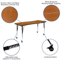MOBILE 86" OVAL WAVE FLEXIBLE LAMINATE ACTIVITY TABLE SET WITH 18" STUDENT STACK CHAIRS, OAK/BLACK FREE SHIPPING!