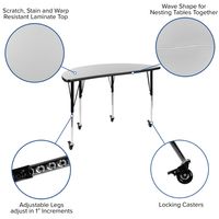 3 PIECE MOBILE 76" OVAL WAVE FLEXIBLE GREY THERMAL LAMINATE ACTIVITY TABLE SET-STANDARD HEIGHT ADJUSTABLE LEGS