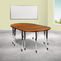 3 PIECE MOBILE 76" OVAL WAVE FLEXIBLE OAK THERMAL LAMINATE ACTIVITY TABLE SET-STANDARD HEIGHT ADJUSTABLE LEGS
