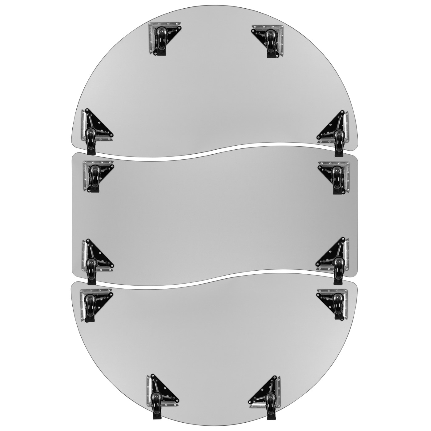 3 PIECE MOBILE 86" OVAL WAVE FLEXIBLE OAK THERMAL LAMINATE ACTIVITY TABLE SET - HEIGHT ADJUSTABLE SHORT LEGS