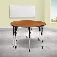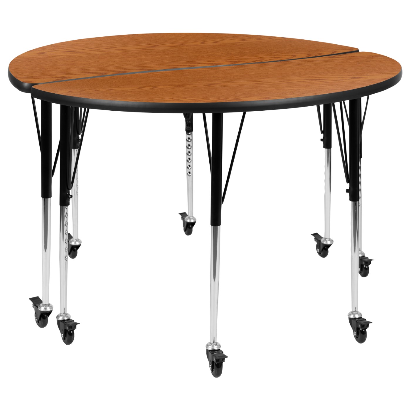 2 PIECE MOBILE 47.5" CIRCLE WAVE FLEXIBLE OAK THERMAL LAMINATE ADJUSTABLE ACTIVITY TABLE SET