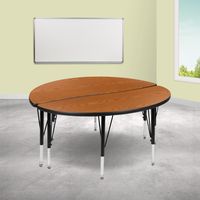 2 PIECE 47.5" CIRCLE WAVE FLEXIBLE OAK THERMAL LAMINATE ACTIVITY TABLE SET - HEIGHT ADJUSTABLE SHORT LEGS