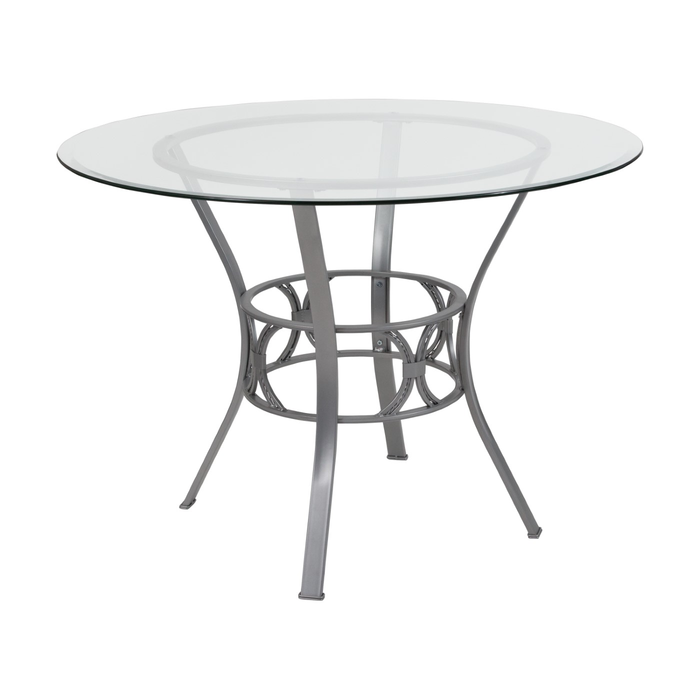CARLISLE 42'' ROUND GLASS DINING TABLE WITH SILVER METAL FRAME