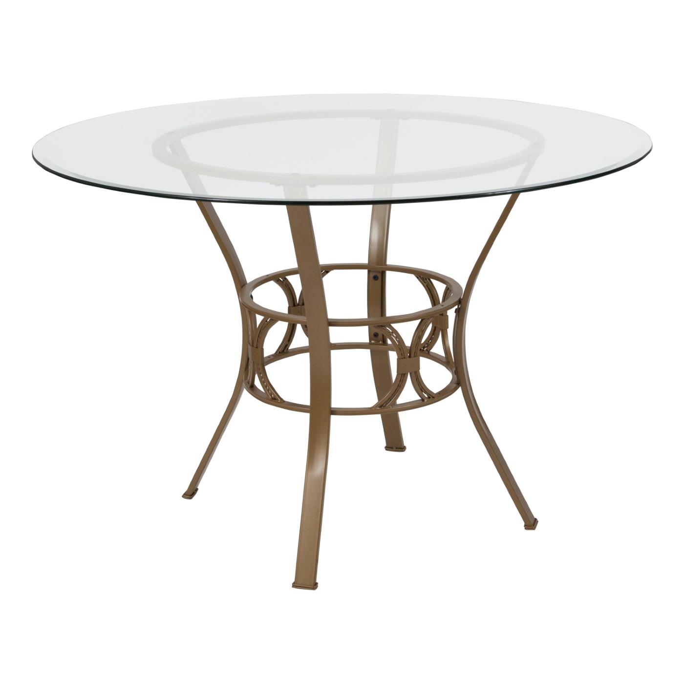 CARLISLE 45'' ROUND GLASS DINING TABLE WITH MATTE GOLD METAL FRAME