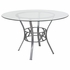 CARLISLE 48'' ROUND GLASS DINING TABLE WITH SILVER METAL FRAME