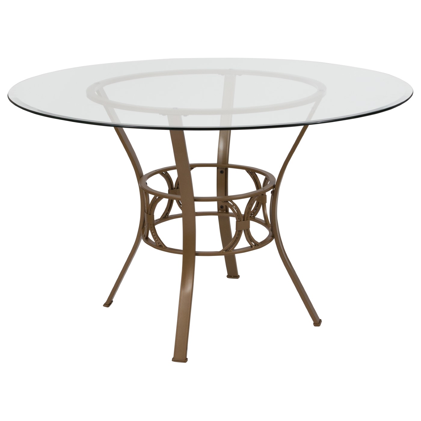 CARLISLE 48'' ROUND GLASS DINING TABLE WITH MATTE GOLD METAL FRAME