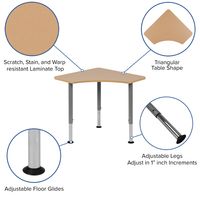 TRIANGULAR NATURAL COLLABORATIVE STUDENT DESK (ADJUSTABLE FROM 22.3" TO 34") - HOME AND CLASSROOM