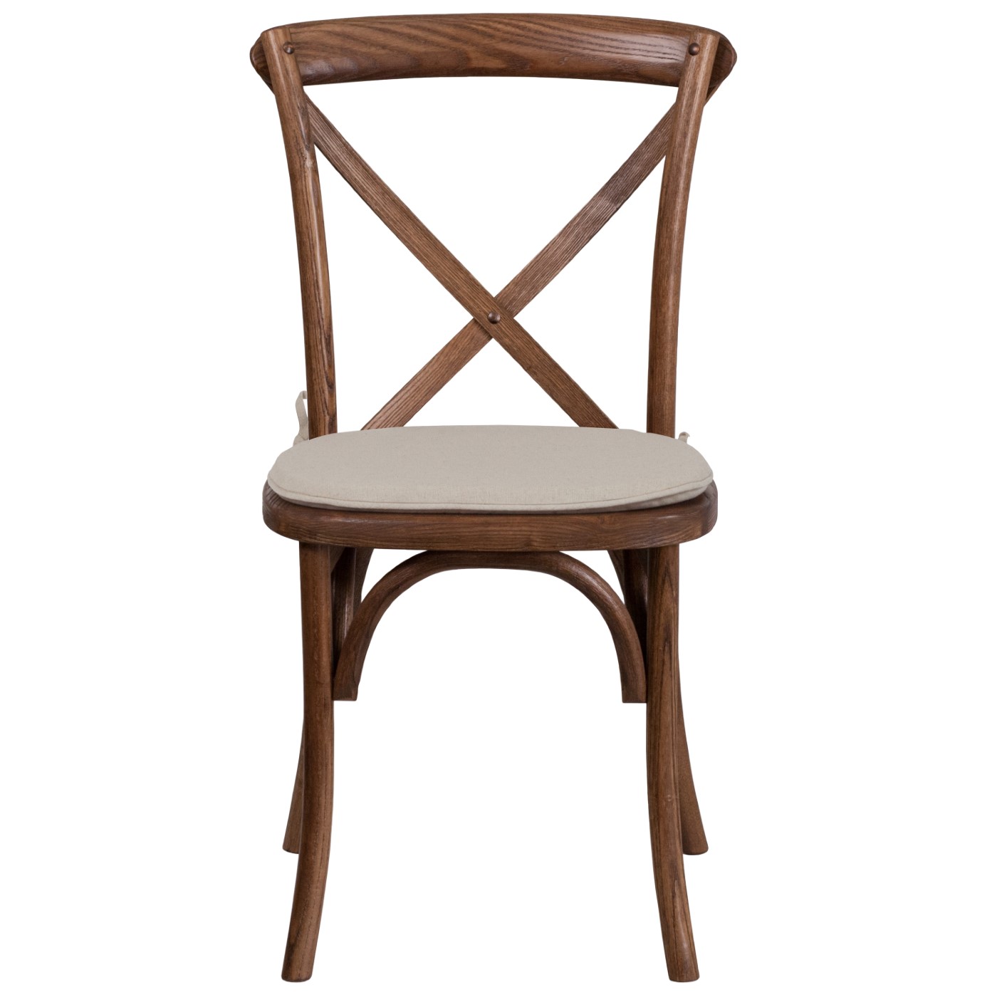TOUGH ENOUGH SERIES STACKABLE PECAN WOOD CROSS BACK CHAIR WITH CUSHION: FREE SHIPPING!