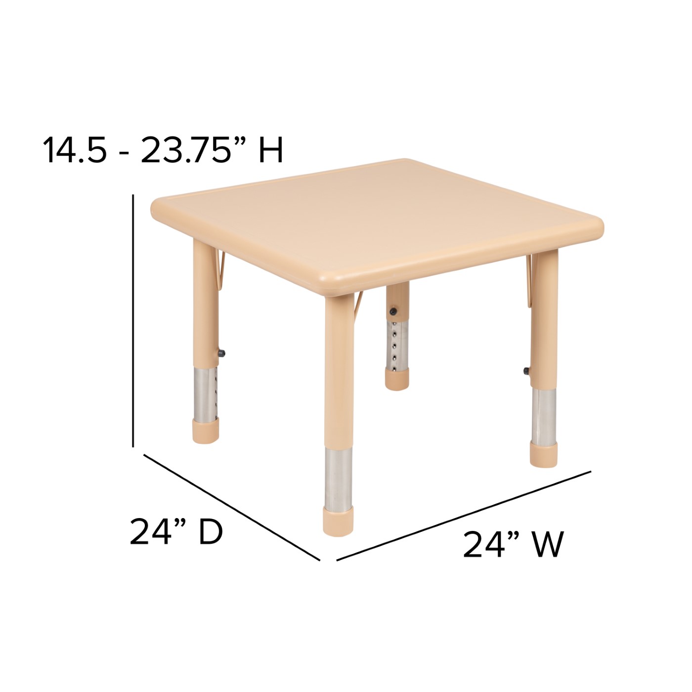 24" SQUARE NATURAL PLASTIC HEIGHT ADJUSTABLE ACTIVITY TABLE