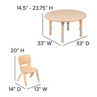 33" ROUND NATURAL PLASTIC HEIGHT ADJUSTABLE ACTIVITY TABLE SET WITH 4 CHAIRS