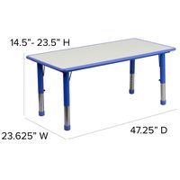 23.625''W X 47.25''L RECTANGULAR BLUE PLASTIC HEIGHT ADJUSTABLE ACTIVITY TABLE SET WITH 4 CHAIRS