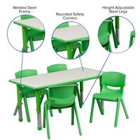 23.625''W X 47.25''L RECTANGULAR GREEN PLASTIC HEIGHT ADJUSTABLE ACTIVITY TABLE SET WITH 4 CHAIRS