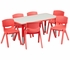 23.625''W X 47.25''L RECTANGULAR RED PLASTIC HEIGHT ADJUSTABLE ACTIVITY TABLE SET WITH 6 CHAIRS