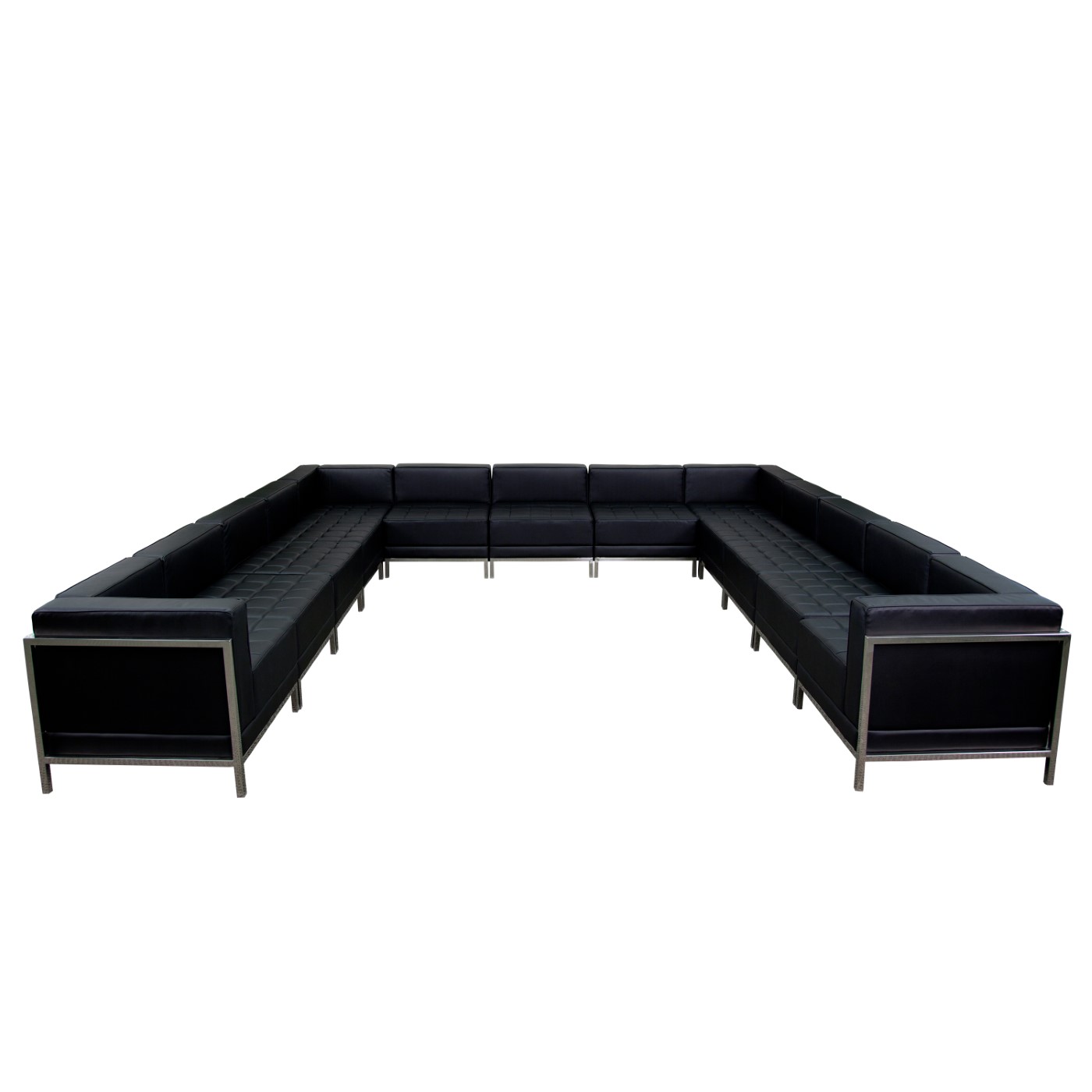 TOUGH ENOUGH IMAGINATION SERIES BLACK LEATHERSOFT U-SHAPE SECTIONAL CONFIGURATION, 13 PIECES