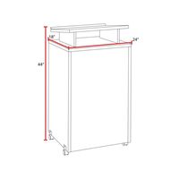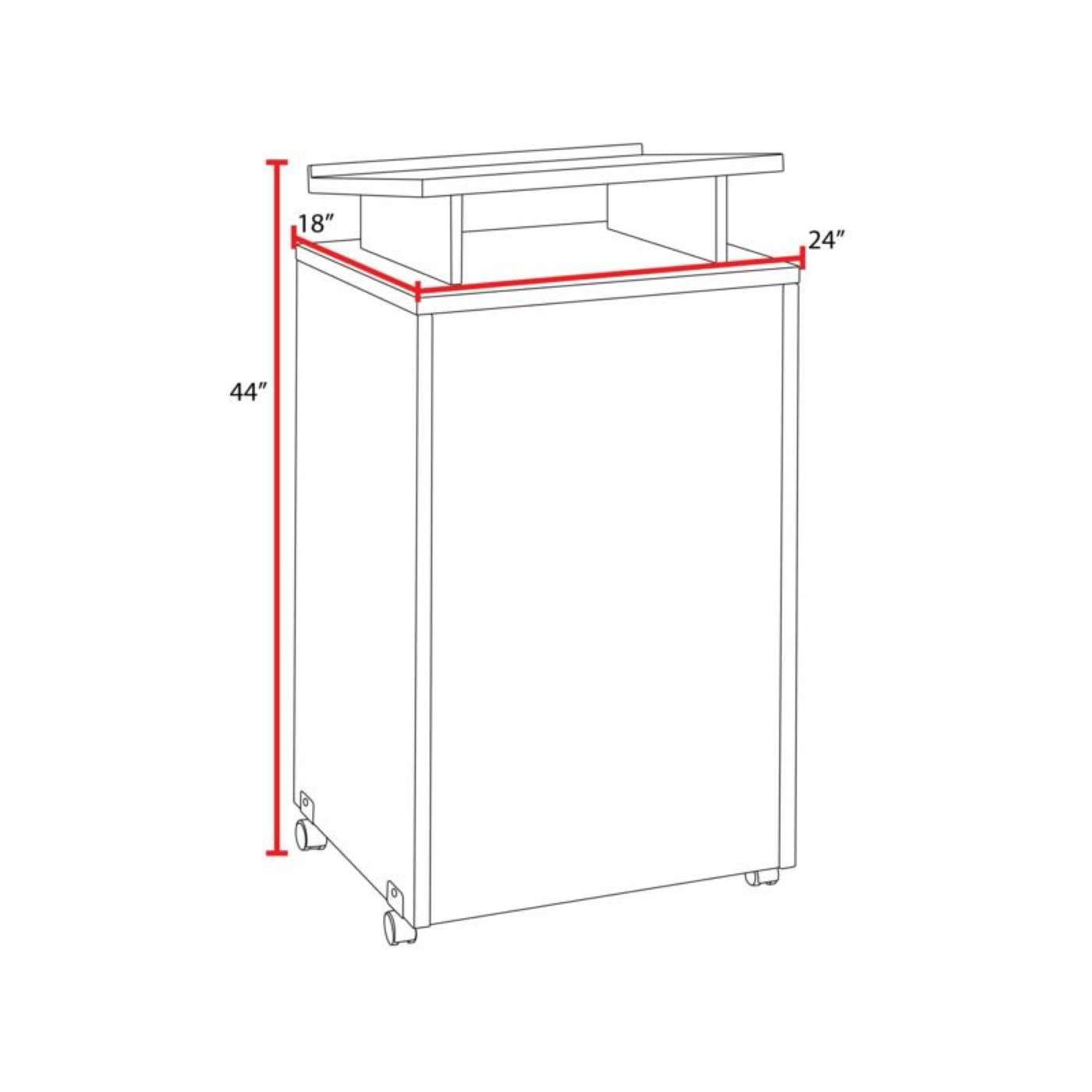 - Two fixed shelves under the podium to store supplies or other personal items out of the audience's view