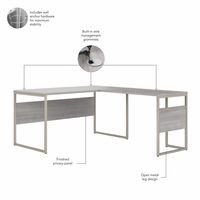 Hybrid 60W x 30D L Shaped Table Desk with Metal Legs: Platinum Gray