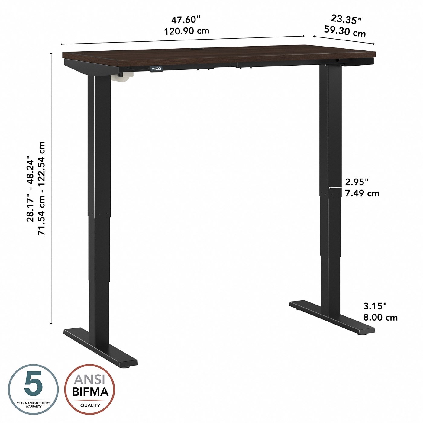 Manufacturer's Move 40 Height Adjustable Standing Desk is a perfect way to build an ergonomic workspace without the high-end price tag. Give your body and mind a break from sedentary work and enjoy a healthier, more productive office with the push of a button. Three stage units lift the 48W x 24D desktop anywhere from 28 to 48 inches at a speed of 1.25 inches per second so you can change positions without missing a beat. The Adjustable Desk also features an Anti-Collision Sensor that stops movement up or down if an object is detected. Available in several attractive finishes, the durable thermally fused laminate work surface resists scratches and stains while a welded 16 gauge steel base allows the desktop to support up to 176 pounds. This Sit-Stand Desk is tested to meet ANSI/BIFMA quality standards for safety and performance and is backed by a 5 Year Manufacturer's Warranty.Features for your benefit: