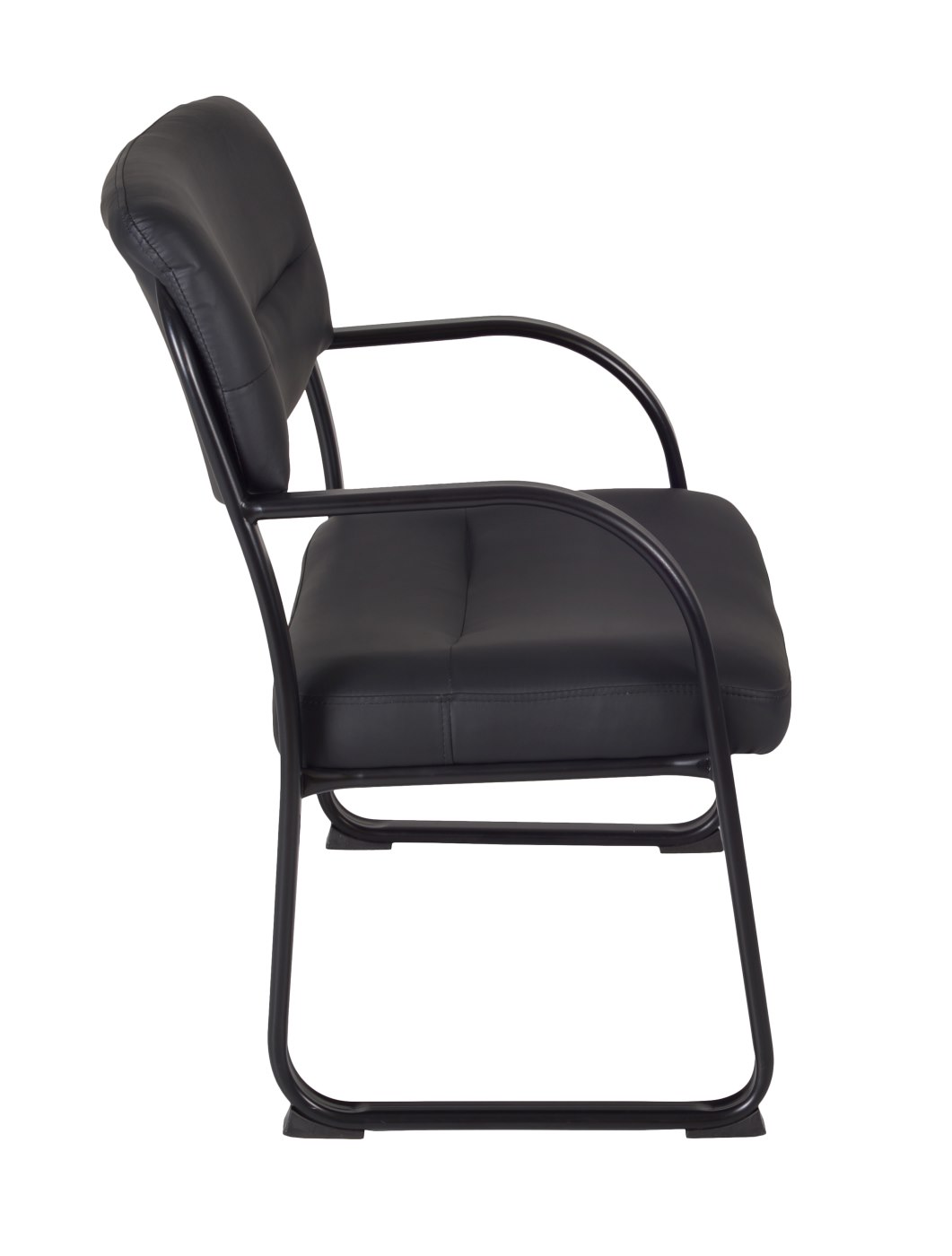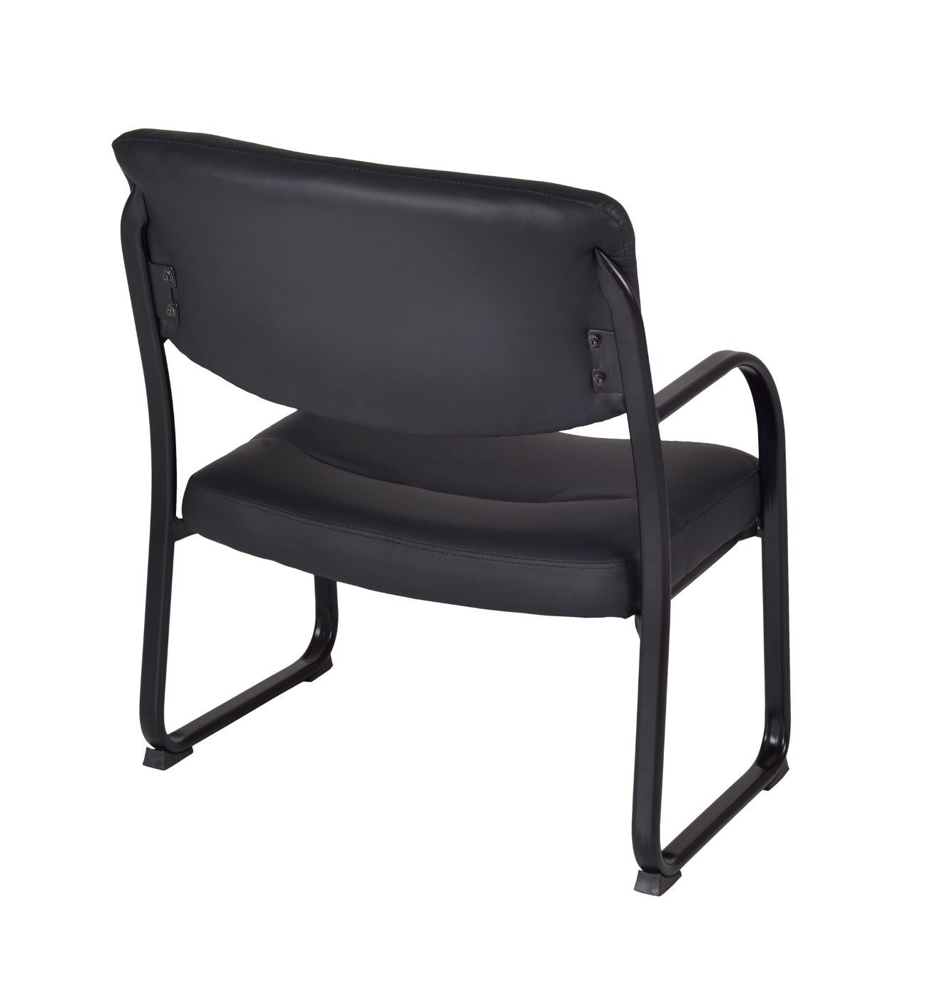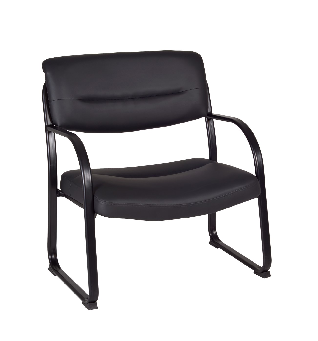 As part of 's Big & Tall Seating Collection, the BT side chair provides comfort for all guests. Its durable frame is constructed of tubular steel with reinforced cross bracing that supports up to 500lbs. The plush bonded leather seat and back are soft to the touch and measure wider than the average side chair. Rubber safety feet on the frame bottom prevent unexpected sliding and protect the floor from scratches. All chairs are backed by a 5-year limited manufacturer's warranty on chair bases and frames and a 2-year limited manufacturer's warranty on chair mechanisms and upholstery.Features for your benefit: