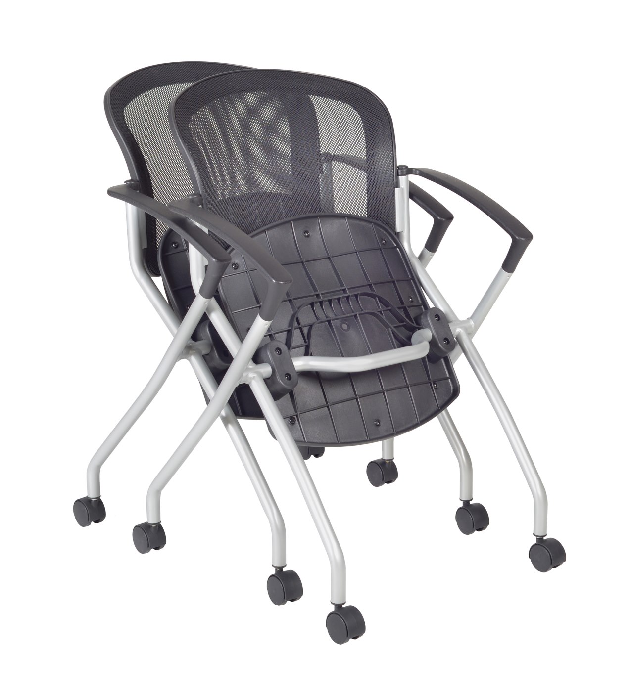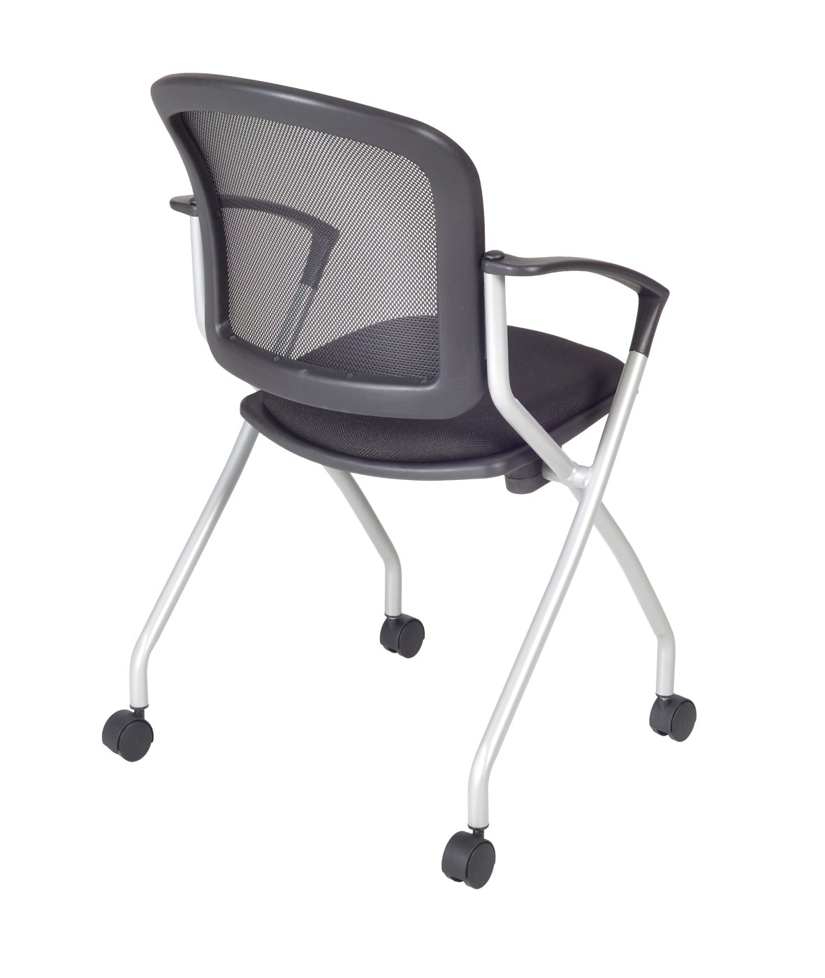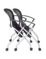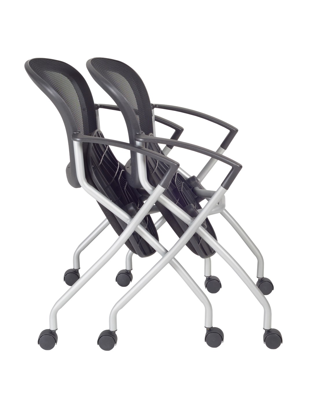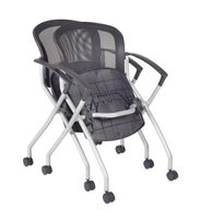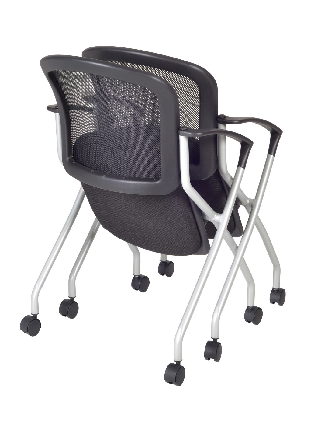 nesting chairs can take you anywhere. A breathable mesh back conforms to users' needs and the seat flips up to provide a unique nesting option. The stylish silver base features four casters for easy mobility and the seat is upholstered with a lasting black fabric. The looks great in sets and is perfect for large training rooms, labs, classrooms, cafes or waiting rooms. All chairs are backed by a 5-year limited manufacturer's warranty on chair bases and frames and a 2-year limited manufacturer's warranty on chair mechanisms and upholstery.Features for your benefit: