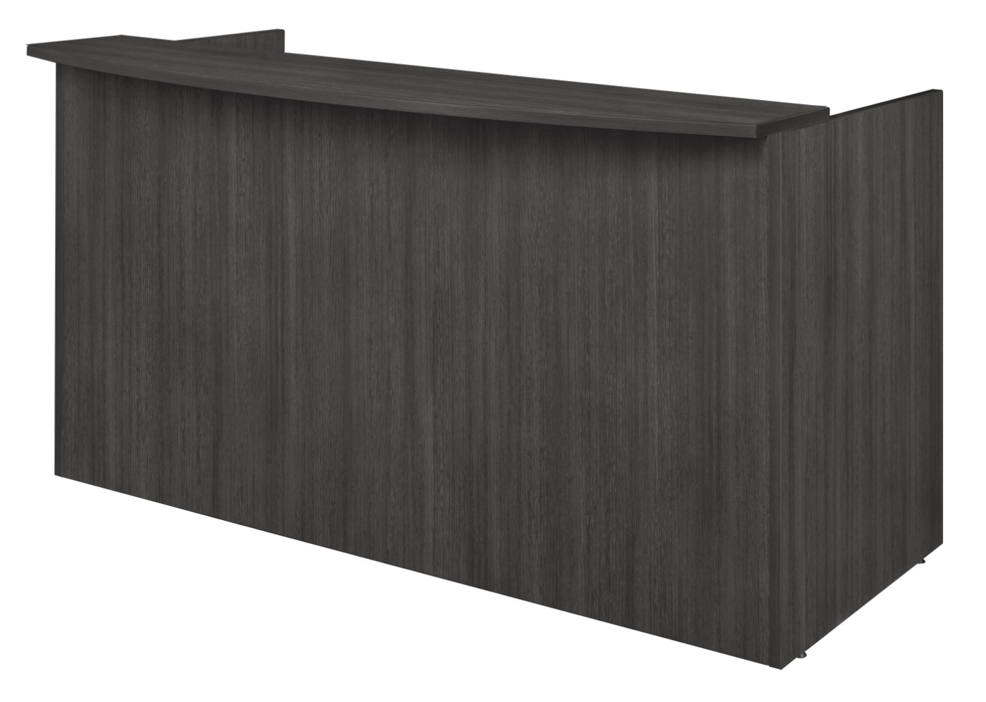Greet visitors properly with the Reception Collection! This 71-inch long desk shell is the framework for a complete office. Use in conjunction with the Reception Desk Return to create a complete reception desk. Customize with full or half pedestals or other storage components. Adjustable glides on the bottom of the base keep the desktop level and are easy to adjust. Finished in an stylish Ash Grey laminate, the Reception Desk Shell coordinates with other furniture which makes customizing easy. The collection is constructed of a 1-inch thick thermal fused melamine laminate with a 3-millimeter commercial grade matching PVC edge. Laminates are scratch, stain and scald resistant. casegoods are backed by a 10-year limited manufacturer's warranty.Features for your benefit: