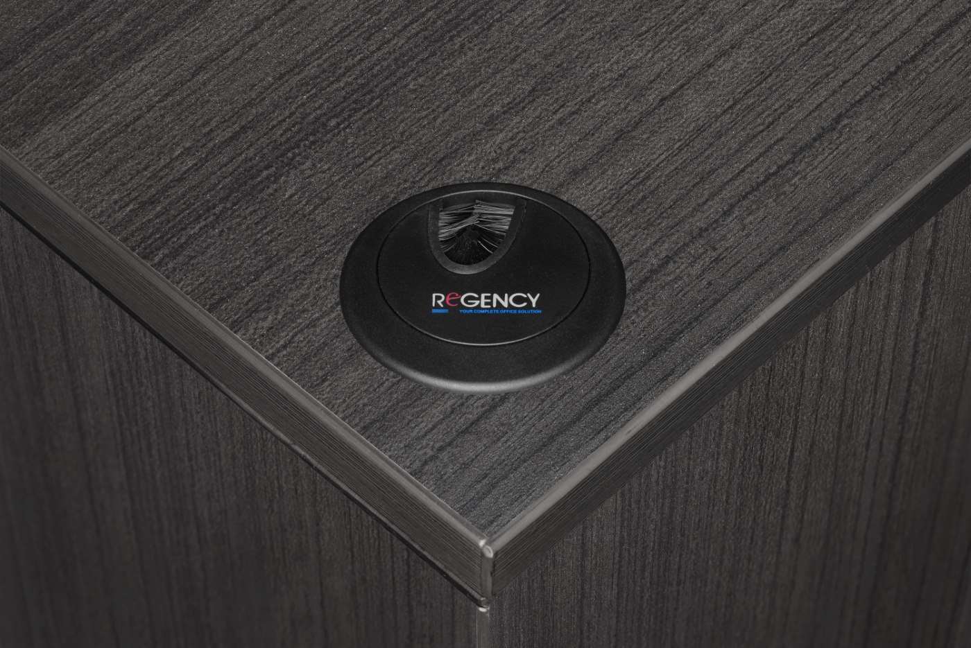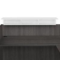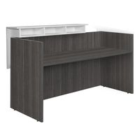 Greet visitors properly with the Reception Collection! This 71-inch long desk shell is the framework for a complete office. Use in conjunction with the Reception Desk Return to create a complete reception desk. Customize with full or half pedestals or other storage components. Adjustable glides on the bottom of the base keep the desktop level and are easy to adjust. Finished in a Ash Grey laminate and a White Transaction top. The Reception Desk Shell coordinates with other furniture which makes customizing easy. The collection is constructed of a 1-inch thick thermal fused melamine laminate with a 3-millimeter commercial grade matching PVC edge. Laminates are scratch, stain and scald resistant. casegoods are backed by a 10-year limited manufacturer's warranty.Features for your benefit:
