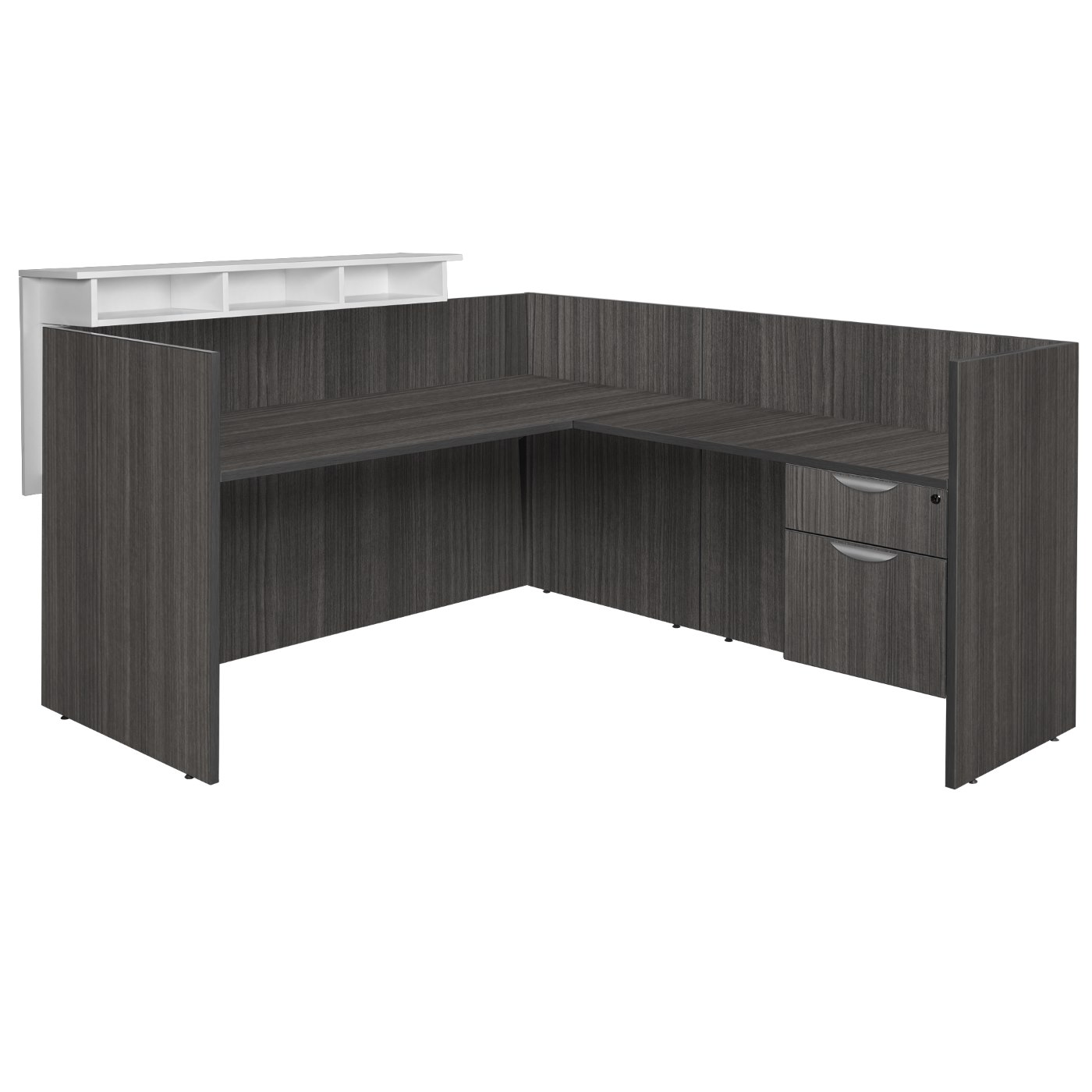 Single Pedestal Reception Desk with White Transaction Top- Ash Grey