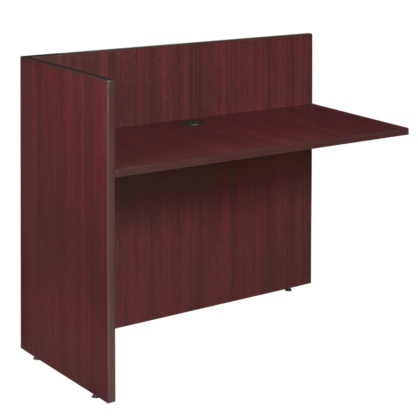 Greet visitors properly with the Reception Collection! This 47-inch long return shell is the framework for a complete office. Use in conjunction with the Reception Desk Shell to create a complete reception desk. Customize with full or half pedestals or other storage components. Adjustable glides on the bottom of the base keep the desktop level and are easy to adjust. Finished in a classic Mahogany laminate, the Reception Desk Shell coordinates with other furniture which makes customizing easy. The collection is constructed of a 1-inch thick thermal fused melamine laminate with a 3-millimeter commercial grade matching PVC edge. Laminates are scratch, stain and scald resistant. casegoods are backed by a 10-year limited manufacturer's warranty.Features for your benefit: