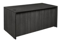 Versatility is just the beginning with so many desking options. This 60-inch single pedestal desk is a great choice for professional and home offices alike. It comes with a box-file pedestal that has one box drawer and one file drawer that accept both letter and legal filing. The drawer locks and includes ergonomically designed drawer pulls for convenience and ease in operation. Adjustable glides on the bottom of the base keep the desktop level and are easy to adjust. Two wire management grommets keep cables clear of work areas. Finished in an stylish Ash Grey laminate, this desk coordinates with other furniture. The collection is constructed of a 1-inch thick thermal fused melamine laminate with a 3-millimeter commercial grade matching PVC edge. Laminates are scratch, stain and scald resistant. casegoods are backed by a 10-year limited manufacturer's warranty.Features for your benefit: