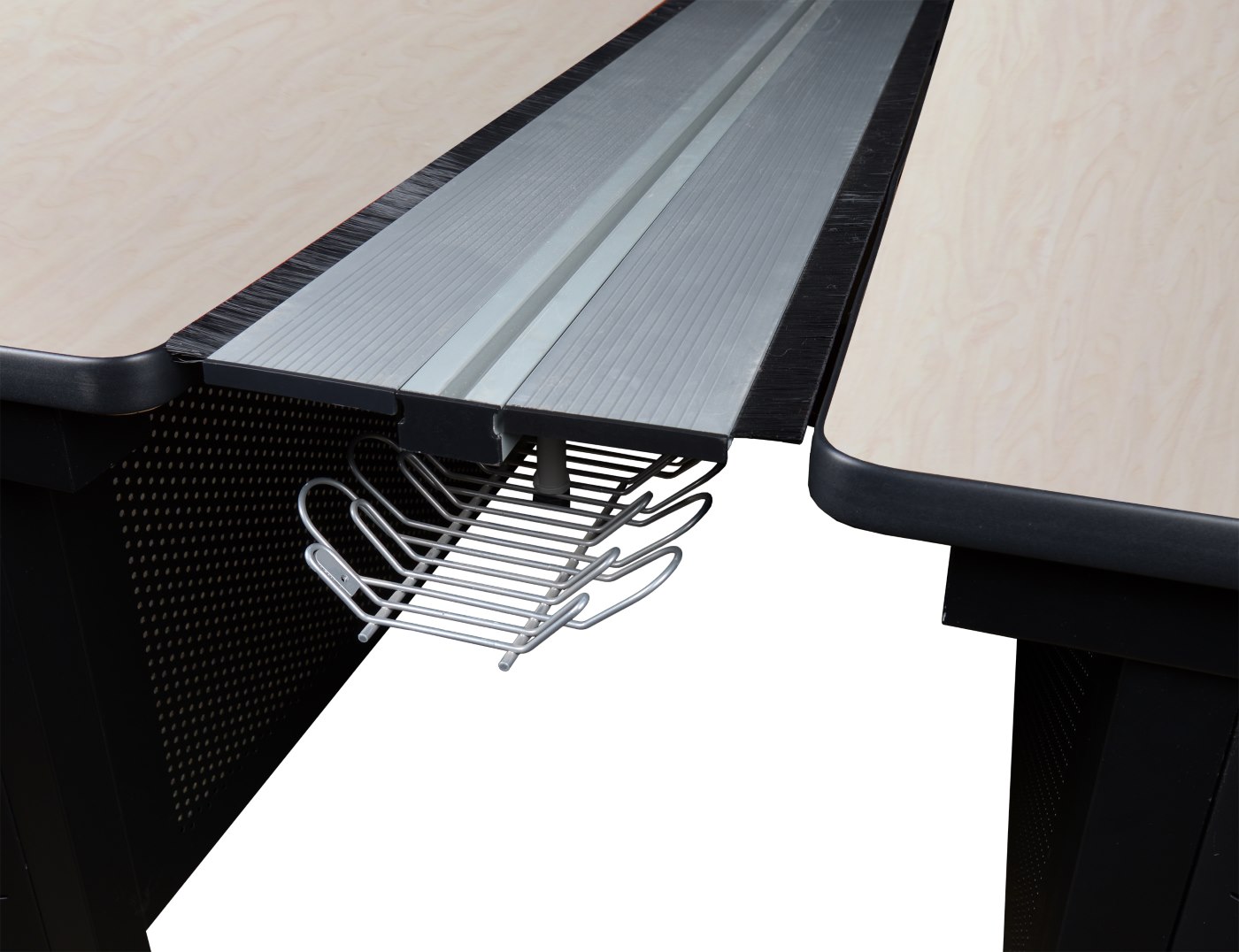 - Cables can run from the wire management trough to inside Fusion's unique wire management C-Legs