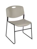 The elegant collection puts the class in classroom. These versatile tables are at home in stylish restaurant settings as well as classrooms, breakrooms and more. This set includes one 60-inch long training table and two Grey Stack Chairs. The table is constructed of a thermal fused melamine laminate tabletop that is 1-inch thick and finished with a black T-Mold edge band. This Grey tabletop is double-sided and finished in Beige on the other side. Rounded corners make the table safer for everyone. Simply pick the side you like and install the base on the other. Self tapping wood screws and a placement template are included. Laminates are scratch, stain and scald resistant and wipe clean easily. The base is constructed of a black tubular steel T-Base and is protected with a black powder coated finish for a uniform, matte finish. Locking casters provide a mobile option, making any table suitable for computer labs, training rooms, classrooms and more. 's Patent-Pending stack chair is not only unique, but durable, sturdy and versatile as well. The seat and back are treated with an anti-microbial agent, which makes it perfect for schools, waiting rooms, cafeterias and more. A reinforced black metal frame is designed to support up to 400lbs and a built in handle makes moving the chair easier. All chairs are backed by a 5-year limited manufacturer's warranty on chair bases and frames and a 2-year limited manufacturer's warranty on chair mechanisms and upholstery. tables are backed by a 10-Year Limited Manufacturer's Warranty.Features for your benefit: