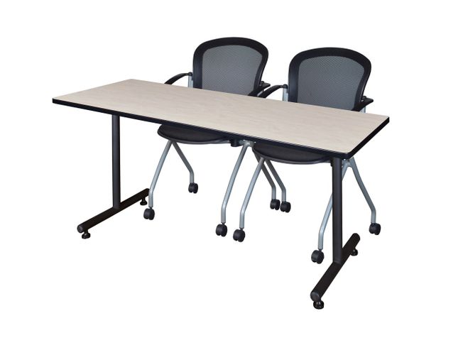66 x 24 in. T-Base Training Seminar Table- Maple, 2 Nesting Chairs