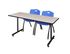 66 x 30 in. T-Base Training Seminar Table- Maple, 2 M Stack Chairs- Blue