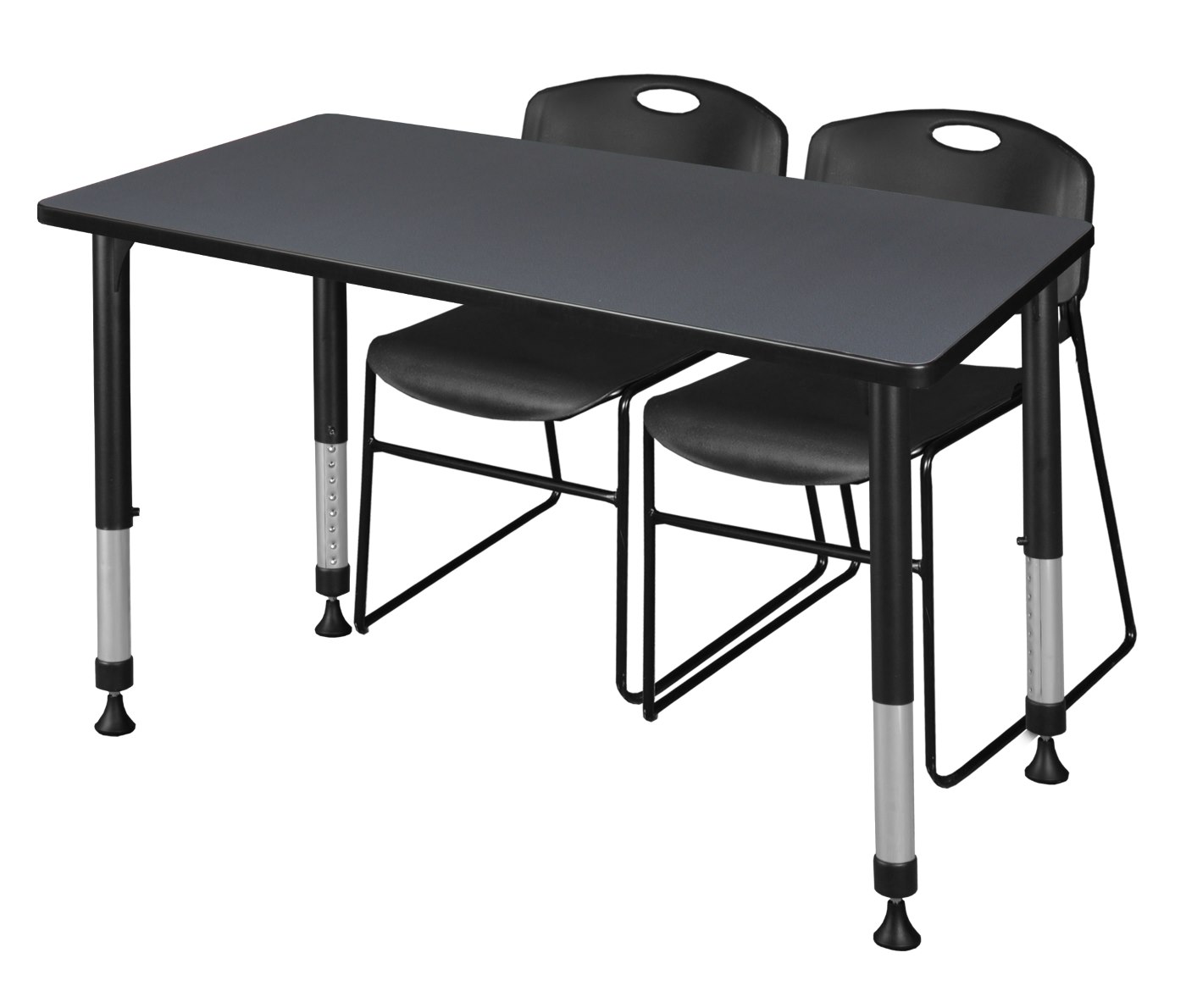 48 x 24 in. Adjustable Classroom Table- Grey & 2 Stack Chairs- Black