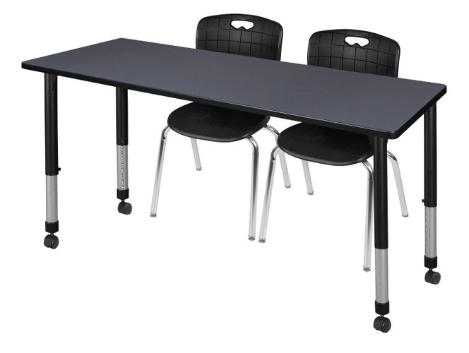 60 x 24 in. Mobile Adjustable Classroom Table- Grey & 2 Andy 18 in. Stack Chairs- Black