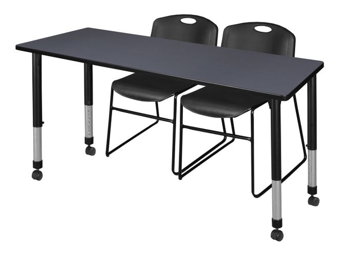 60 x 24 in. Mobile Adjustable Classroom Table- Grey & 2 Stack Chairs- Black